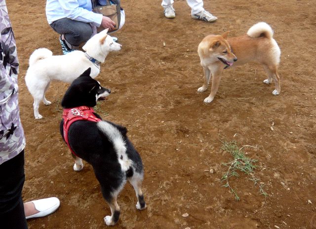 車生活 コメントを残す せっかく車があるので舎人公園にモコを連れて行った。 車で10分弱。 ここはこのあたりでは一番大きい公園で、バーベキューができたりちょっとしたプールがあったりする。 そして何よりドッグランがある! モコ、初ドッグラン!! どんな反応するか楽しみだったけど、案の定、おびえてオレの足下から離れない。離れてもフェンス際をそろそろ歩く程度。 30分くらいしてようやく慣れてきた時の写真がこれ。 奇跡の黒白茶柴。 みんなかわいい!